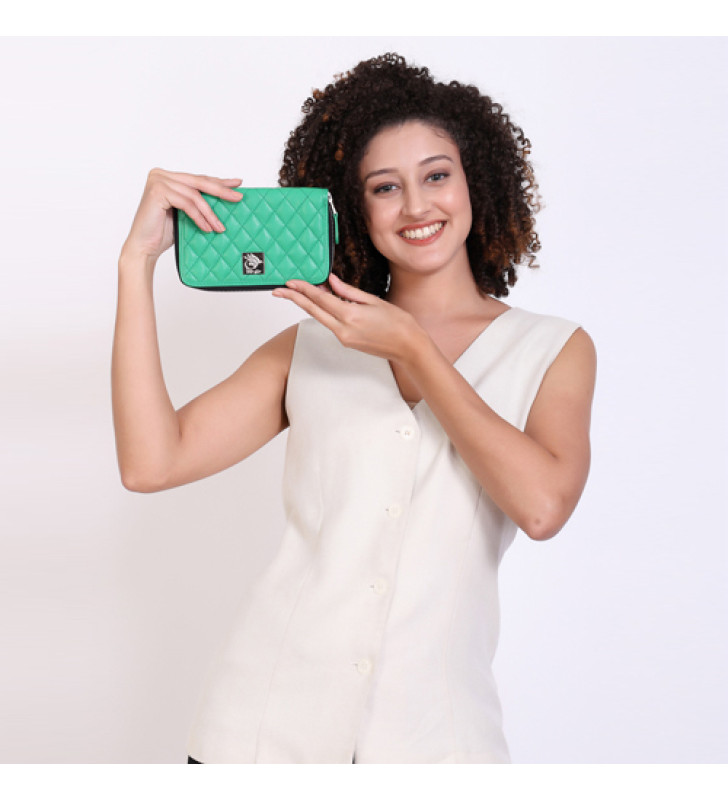 Genuine Leather , Diamond Quilted Leather Women Wallet