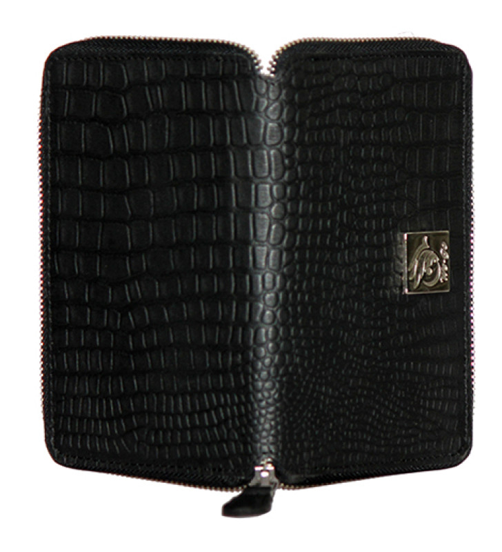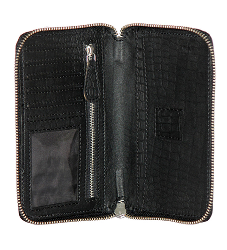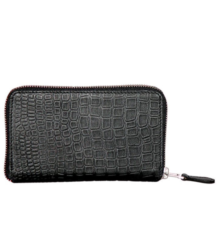 Genuine Leather , Croco Embossed Leather Women Wallet Black Color