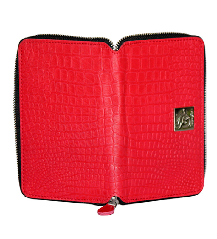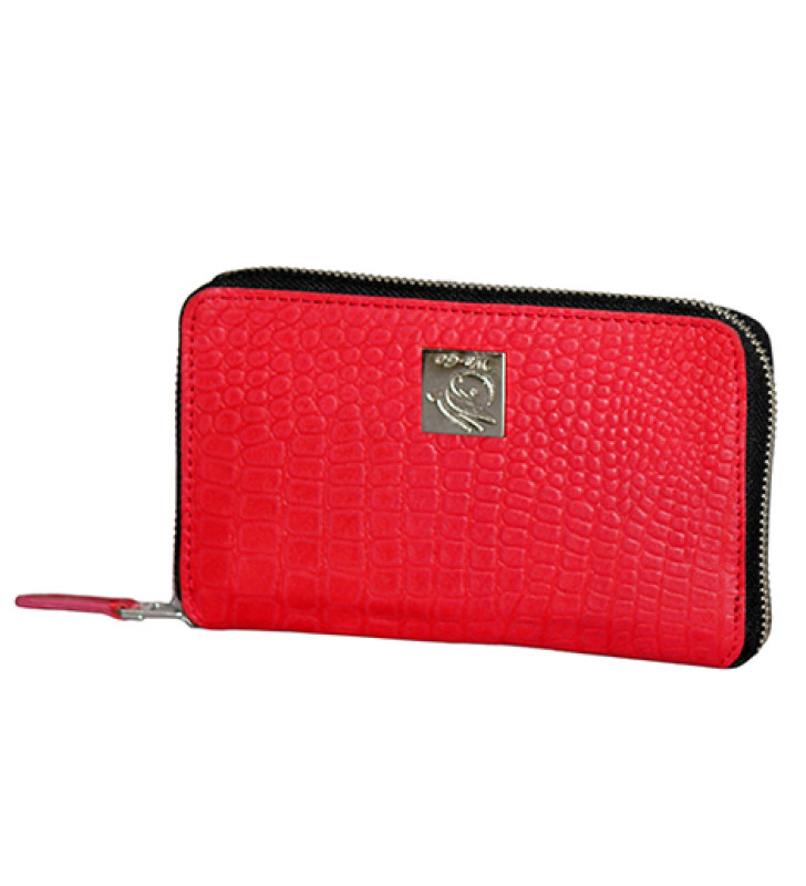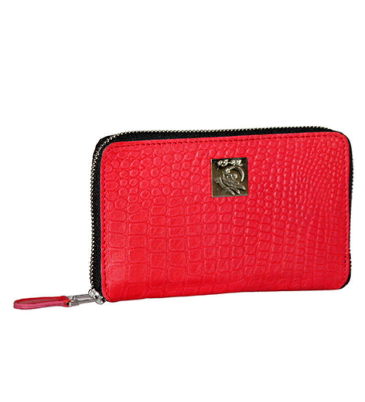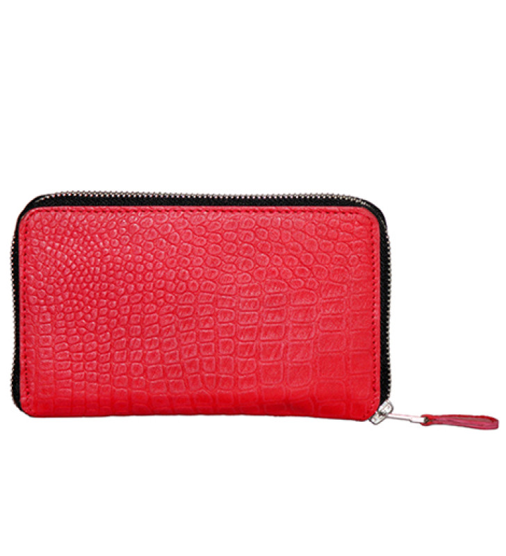 Genuine Leather , Croco Embossed Leather Women Wallet Red Color